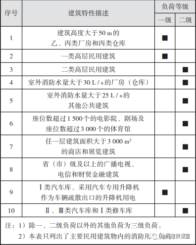 表1消防用电负荷等级划分