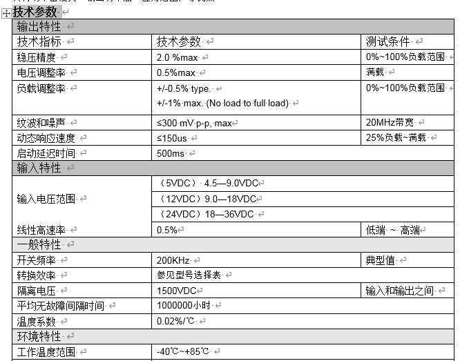特殊备注:5V输入的产品,在4.5V~5.2V输入的时候输出最大功率为2W。要求输出大功率请用其他高电压输入。