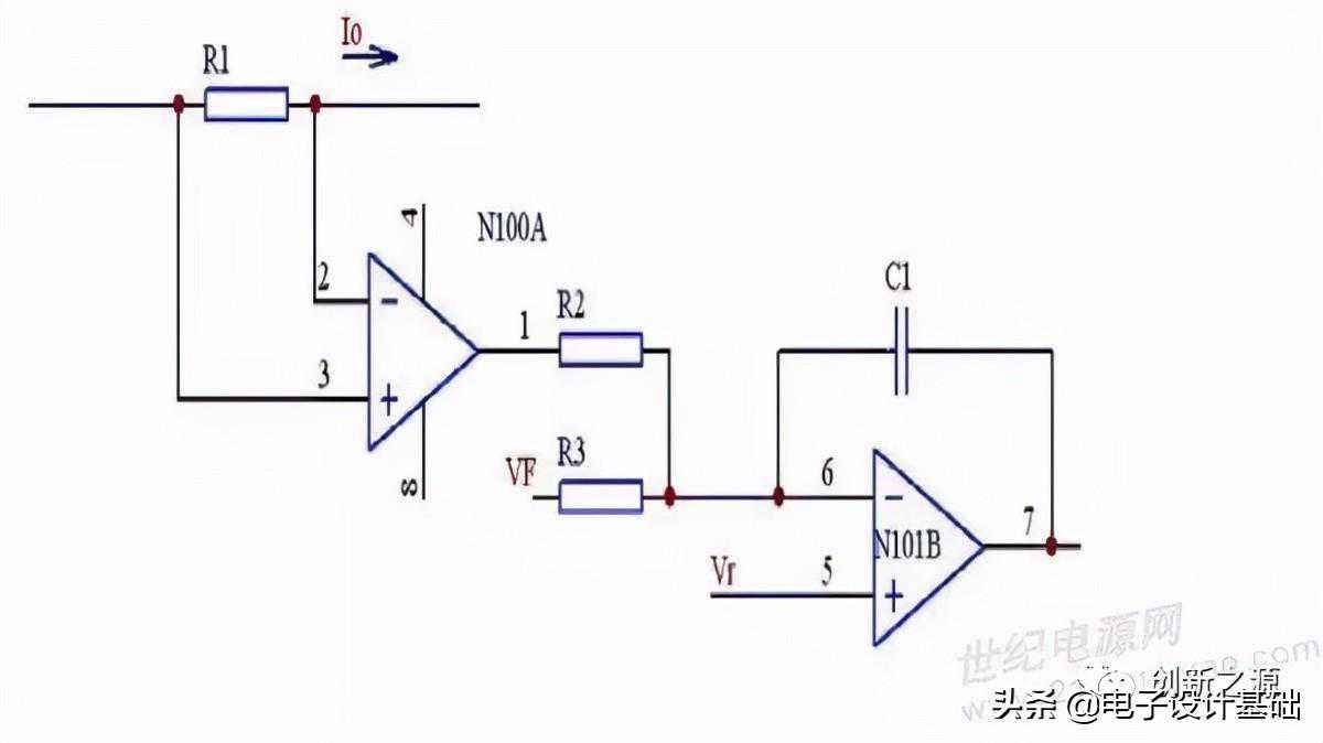 对于图中电路,VI代表本模块输出电流,通过一个1K的电阻引出到均流母线,均流母线上的电压为所有并联模块输出电流的平均值,