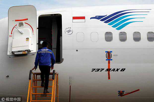 3月13日,一名技术人员准备检查印尼鹰航的一家737MAX8@视觉中国