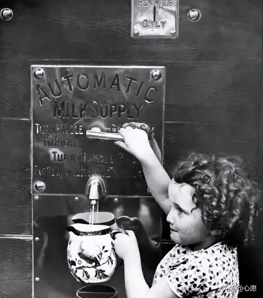 23伦敦一名小女孩,在街头自动贩卖机上购买牛奶