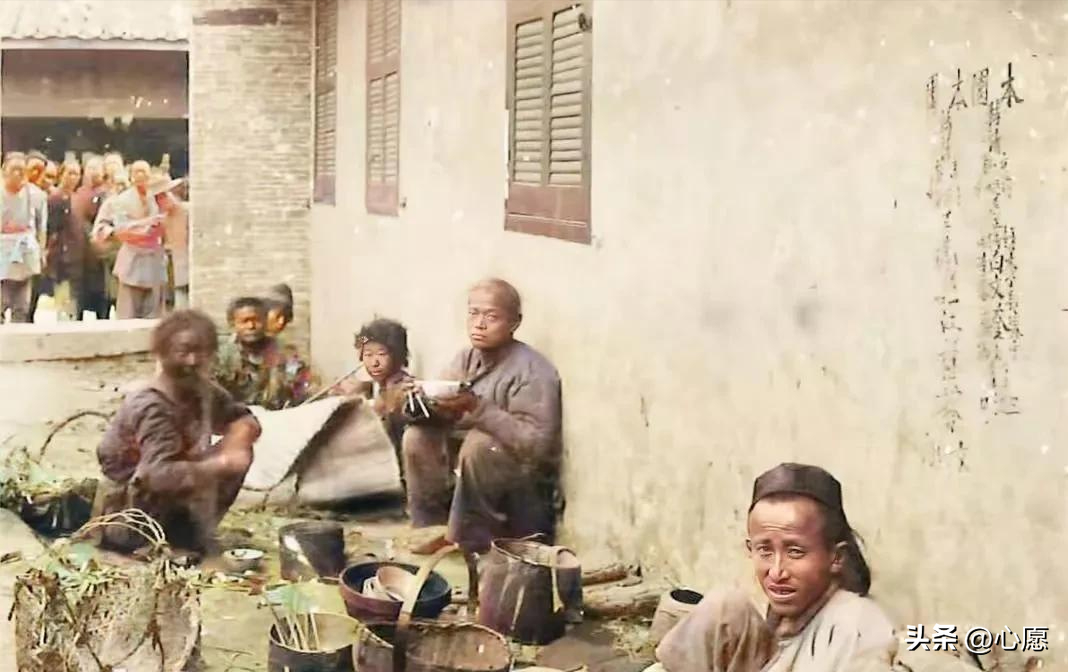 07镇江逃荒的穷苦百姓,天灾人祸下,都是居无定所,举家乞讨。