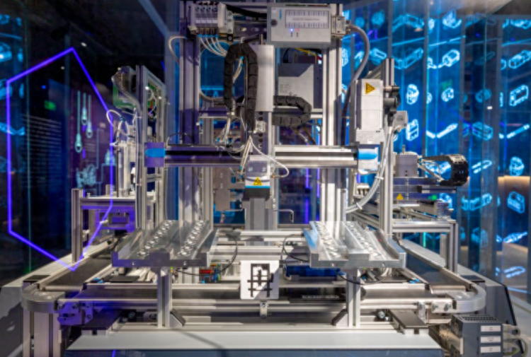 费斯托工业4.0智能制造生产线据费斯托中国教学培训部应用技术经理颜少亮介绍,这台生产线通过4个工位模拟4道工艺。当客户从网络商城下单时,上游MES(ManufacturingExecutionSystem)系统接收订单并自动下发,随即设备开始根据客户需求自动生产,实现以标准生产线完成个性化小批量产品的定制工作。它不仅是集工业4.0的前沿技术、PLC(ProgrammableLogicController,即可编程逻辑控制器)、HMI(HumanMachineInterface,即人机界面)、IT(InformationTechnology,即信息技术)、网络商城等于一系统的CPLab,也是世界技能大赛的设备之一。