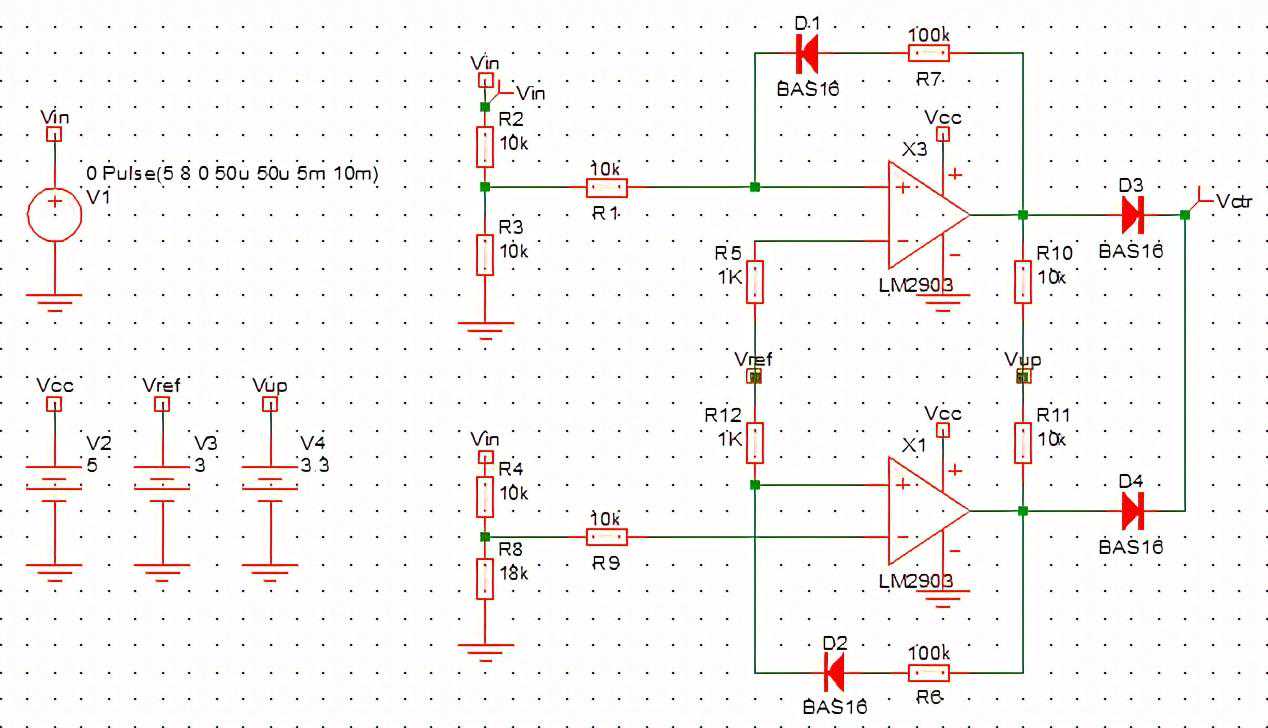在一个可靠的电源变换器中,过压保护和欠压保护的功能是必须具备的。对于直流电压,只需将其通过电阻分压后输入滞回比较器即可实现这两种保护。