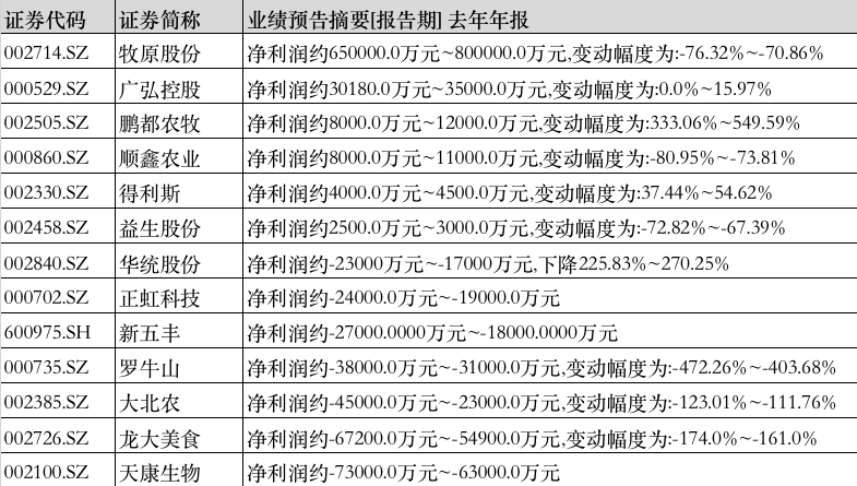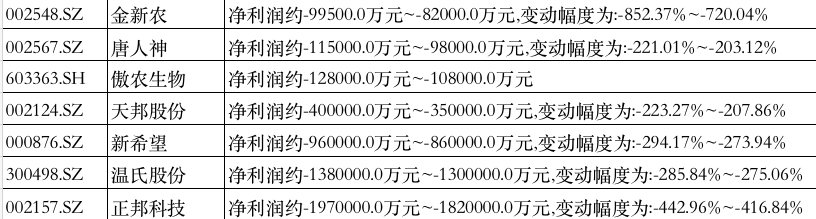 猪企2021年业绩预告。时代财经制表