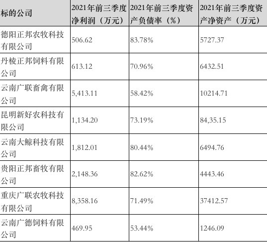 饲料公司是桩好买卖?本次交易涉及的标的包括德阳正邦农牧科技有限公司、丹棱正邦饲料有限公司、云南广联畜禽有限公司等8家正邦科技控股子公司(以下简称“标的公司”)。正邦科技预计从本次交易中获得11-19亿元的投资收益,占最近一个会计年度经审计净利润19.15%-33.08%。